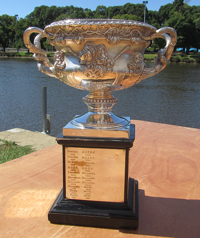 On 29 June 1904 the Executive Committee recommended the purchase of the above cup "for School Crews of Eight Oars". The Honorary Secretary was authorised to purchase a suitable cup at a cost not to exceed 50 guineas ($105). All races to be rowed in clinker racing eights. In 1907 it was altered to School Crews of Four Oars in clinker boats; then due to lack of entries it was changed to Lightweight Four for the 1951 Regatta. From 1986 it has been for Men's Lightweight Senior C Four with Cox, then 1994 Men's Youth four and finally in 1996 the Women's Elite Eight.