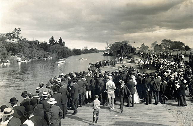 Regatta day in 1908 at Bairnsdale with South Melbourne defeating Mercantile in the maiden eights