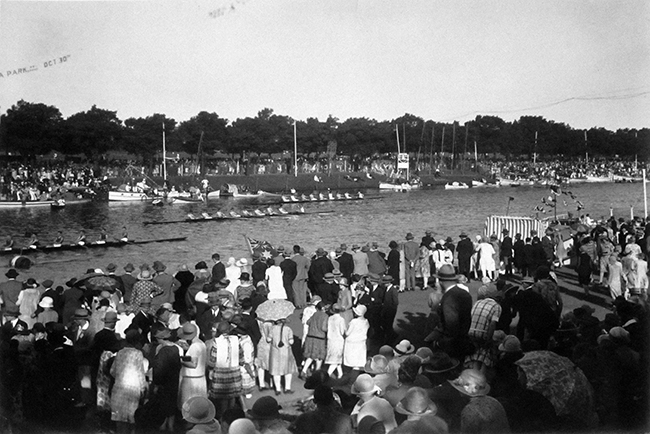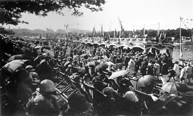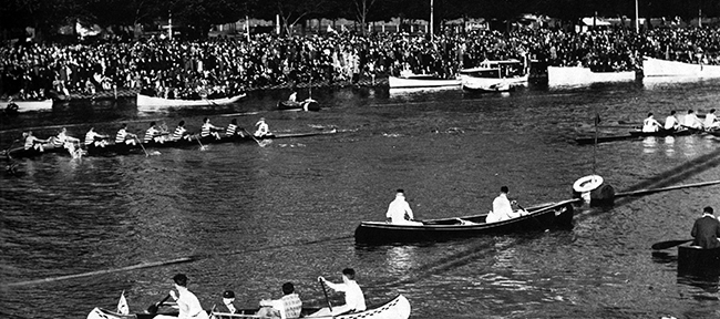 Regatta scene showing the packed crowds