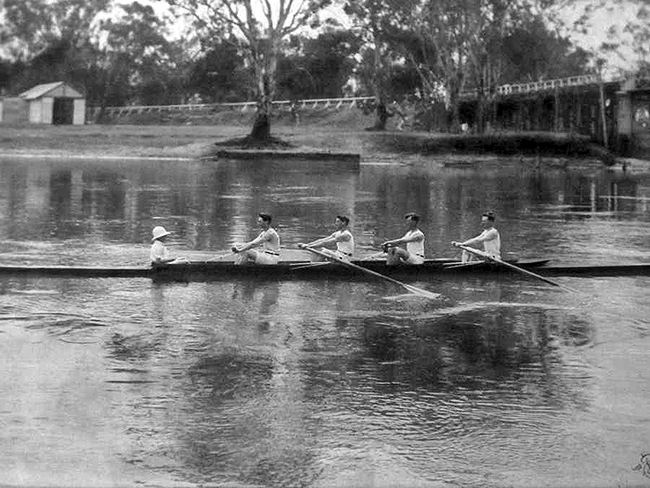 The northern Victorians who won the Elswick Challenge Cup for junior fours pictured here on the Murray River