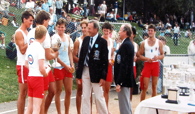 Victorian Rowing Association President Hon. Hubert Frederico was concerned with the falling status of the Australian Henley Regatta. He was also a good friend of Rosemary Richardson and knew her drive, professional organisational skills, ability to influence and engage people and her devotion to the sport. 'Freddy' approached Rosemary in 1984 about taking over the regatta and bringing back some its former glory. Rosemary had a very high regard for 'Freddy', and fortuitously for the sport and the regatta, she agreed.1 Rosemary did insist that Freddy be an ex-officio member of the Committee of the regatta.