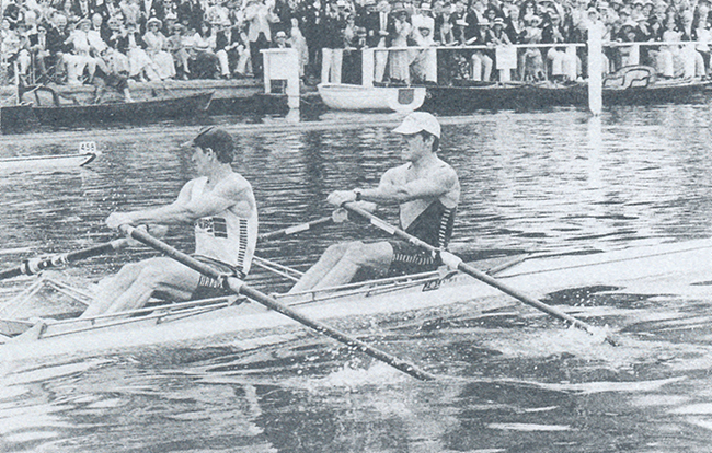 This was Peter Antonie's second win at Henley having won in 1988 in the Australian Quad Scull. The Henley Regatta Record reported as follows. There were three outstanding doubles who were selected, Cracknell and Thatcher, Free and Antonie from Australia and Jamieson and Gleeson from the U.S.A. All sculled through to the semi-finals and were joined in them by West and Cassidy. ..... The final provided yet another classic encounter between well-matched doubles. Jamieson and Gleeson led by one length at the first signal and maintained this lead right up to the mile and an eighth. Here Free and Antonie mounted a massive assault. They raised their rate and began to close, the Americans raised their rate to 39 but the Australians, finishing at 45, just got ahead in the last stroke to win by two feet.