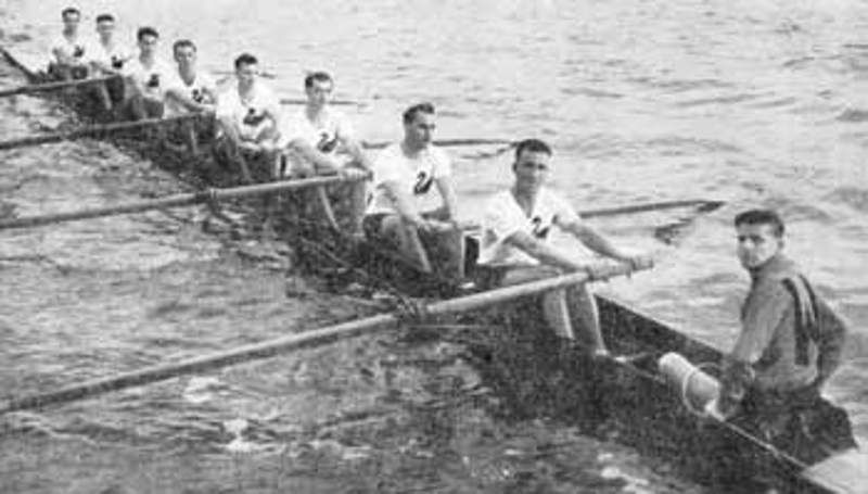 Bow: Jack Messer, 2: Don O'Brien, 3: Richard (Dick) Child, 4: Ken Roberts, 5: Milton Francis, 6: Allan Hall, 7: Don Ross, Str: Robert Semple, Cox: Terry Scook