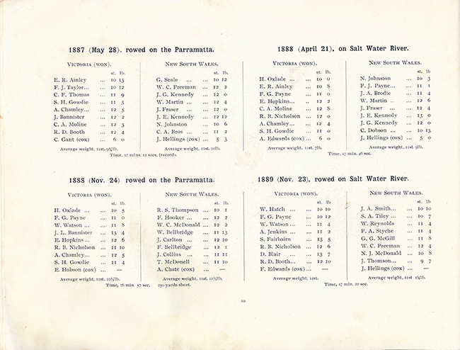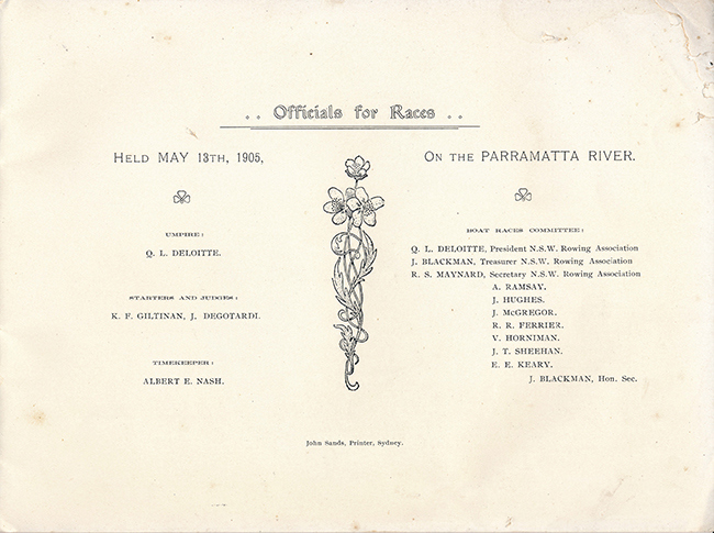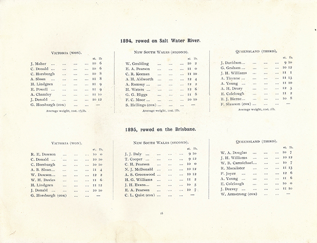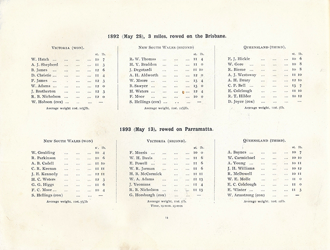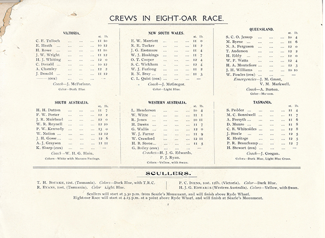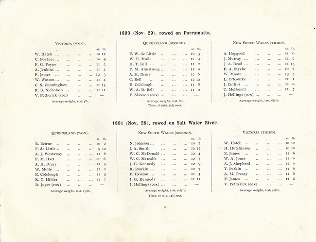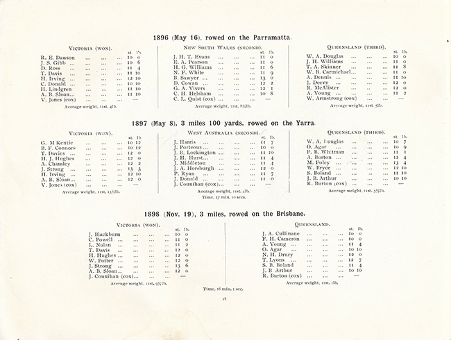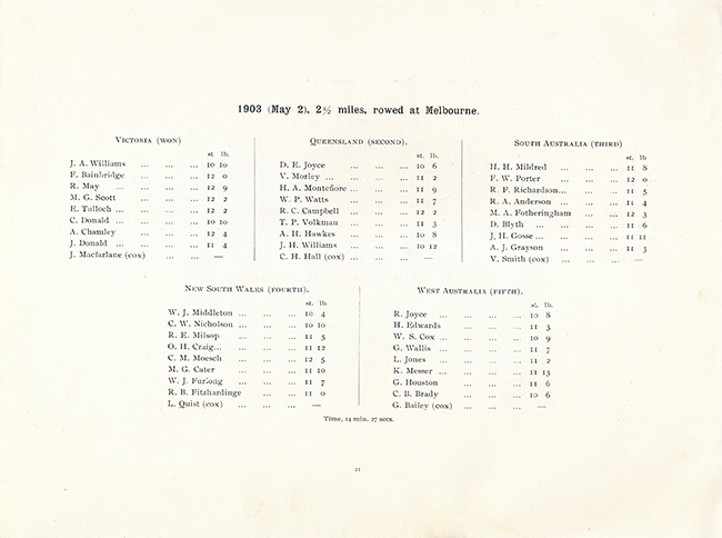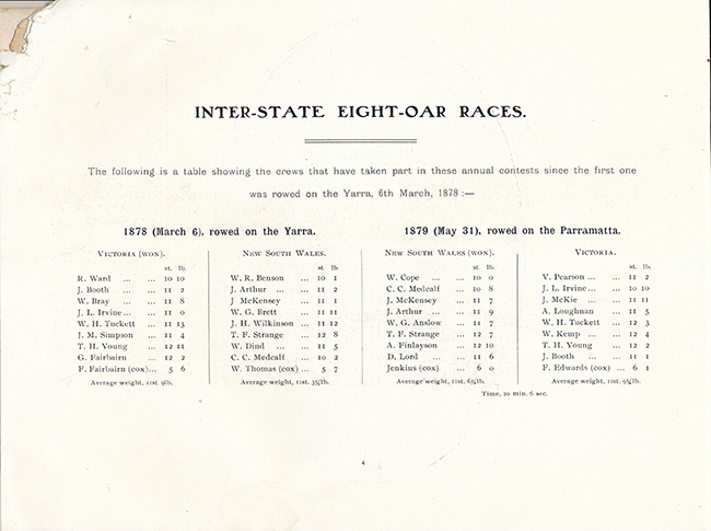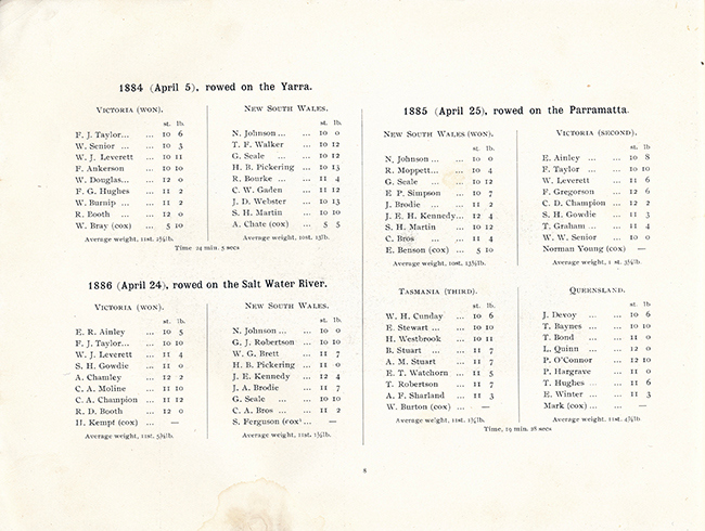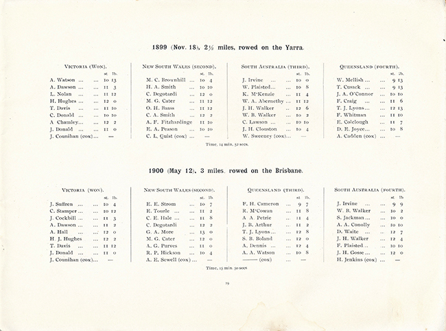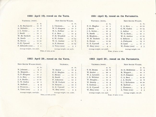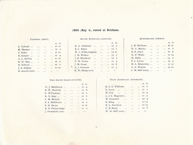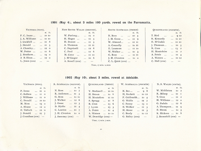 These contents of this history are copyright. Apart from any fair dealing for the purposes of private study, research, criticism or review, as permitted by the Copyright Act, no part may be reproduced by any process without written permission. However given that the purpose of the history is to assist rowers and rowing clubs, written permission is not required for non-commercial usage by rowers and rowing clubs provided acknowledgement is made.