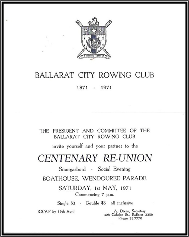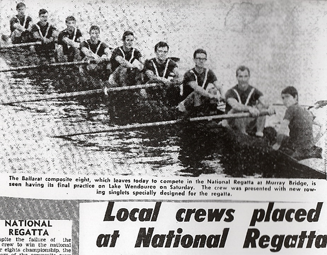 Alan’s career started in 1952-53 when as a 16-year-old schoolboy he did some rowing with the Jones' twins. When he left school they gravitated to Ballarat City as the twin’s father was the legendary Teddy Jones who coxed crews not only from BCRC but from all over the state for 30 years.