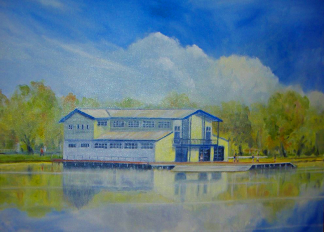 Alan also kept a copious file of newspaper clippings and photos from his competitive days which he generously gave me access to in 2000 when I was starting to write the club’s history, He also gave unstintingly of his time and memories and his talent as a painter is also evidenced by the gift he gave me - a painting of the club which became the front cover for the book on the club history “Boys from the Rushbeds.”