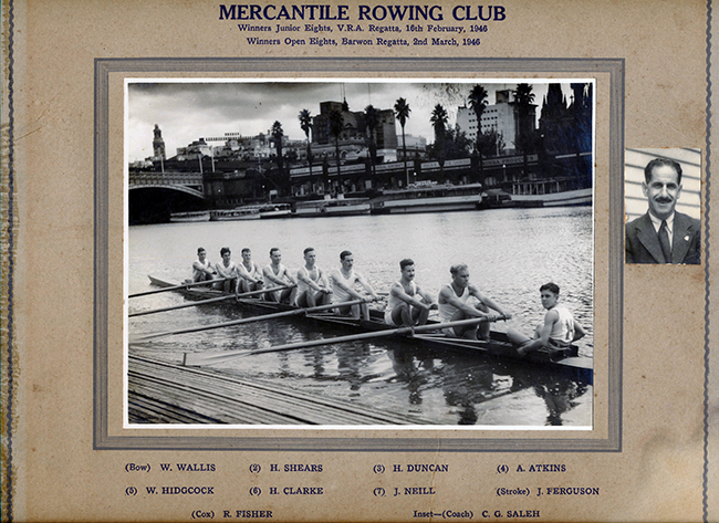 Jim returned to serious racing in 1947-48 season in the Mercantile senior eight. Despite this crew being unsuccessful, an open eight win was a consolation along with some successful coaching both with Mercantile and University crews.