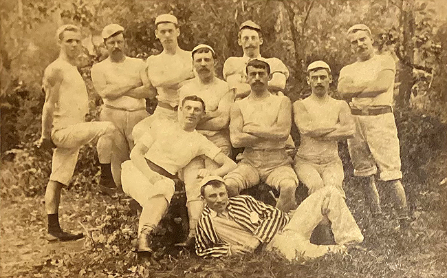 Mercantile members of 1889 with Gilchrist centre of the fifth row under Club founder Boyd