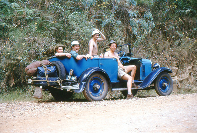Simon driving his 1930 Chevrolet to regattas as a young man