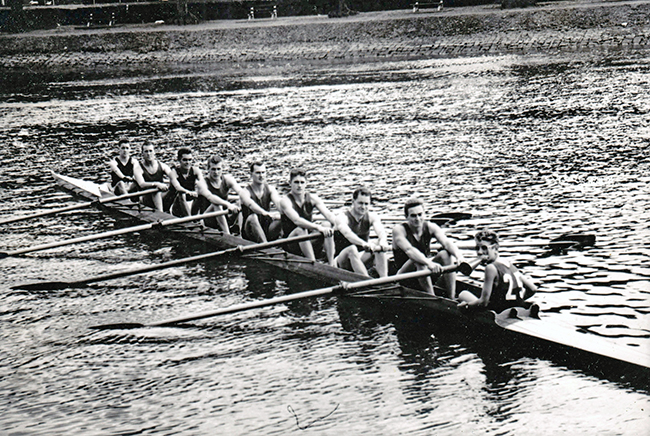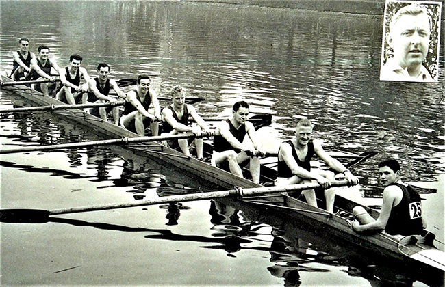 Alan in the stroke seat of 1958 Yarra Yarra Maiden Eight