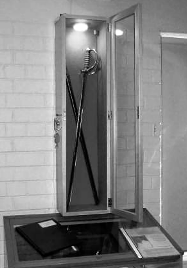 The T.N.H. Stretch MC and Bar Sword of Honour donated to the Australian Army by Major J.M.E. Highfield, MC (Retd) in 2002. The display case was donated to the Regiment by the UNSWR Association in 2006. (Regt Archives)