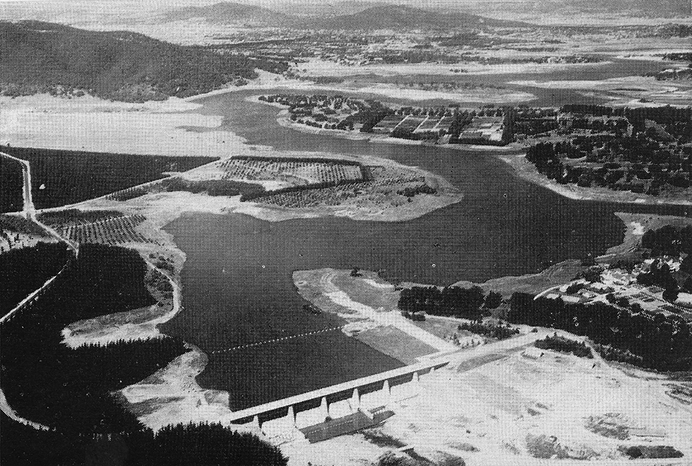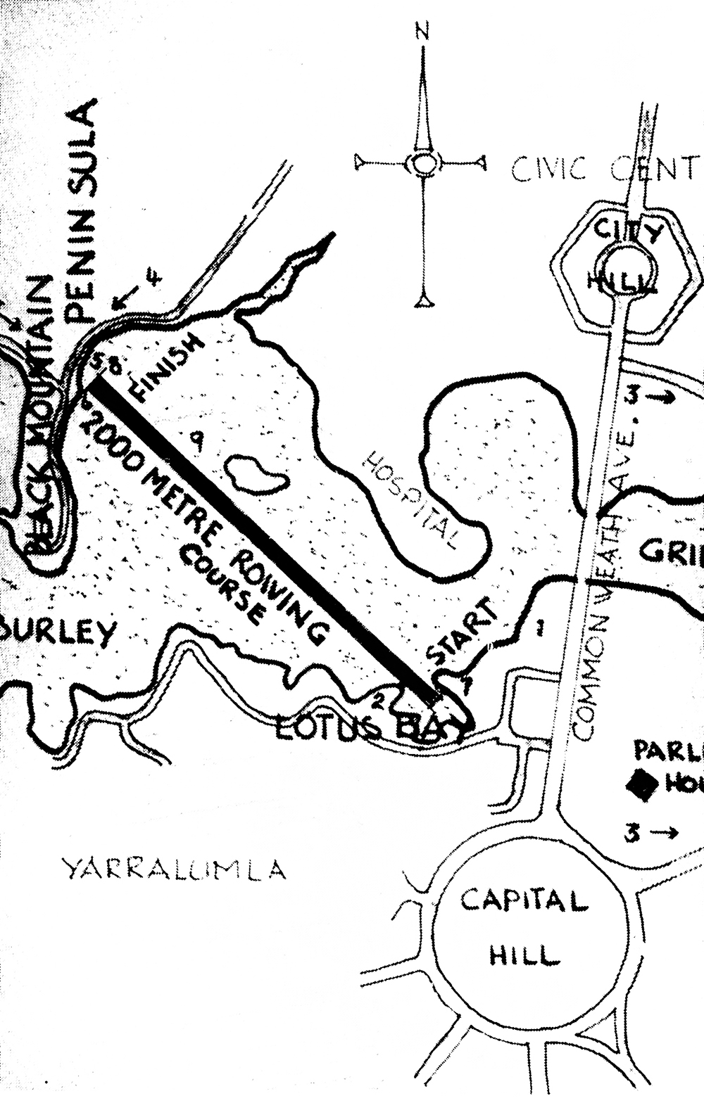 Lake Burley Griffin from behind Scrivener Dam from the 1964 National Championships program - Image from Andrew Guerin