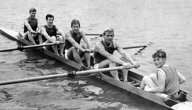 Another crew of interest was Albert Bell's Corio Bay senior four of bow David John, 2 David Caithness, 3 Derek Norwood, stroke David Ramage and cox Phillip Sarah. This crew won the senior four championship this season and the following two seasons, along with a NSW Championship four and the inaugural National Championships coxed four in 1962. An excellent crew to come out of Geelong.
