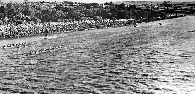 Terry Davies, who ably stroked the King’s Cup Crew to a thrilling win, could be accredited in part with Banks Rowing Club winning the Senior Premiership for the second year in succession, when he took over the stroke seat of the Banks Senior Eight following the retirement of the great Neville Howell. Banks would also go on to win the tightly contested Junior Premiership, narrowly taking it from Mercantile Rowing Club, who also won the Lightweight Premiership.