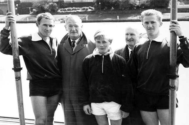 From the left, Bruce Richardson, Alf Lodding (unofficial coach), Wayne Gammon, Ray Todd (friend of crew), Neil Lodding