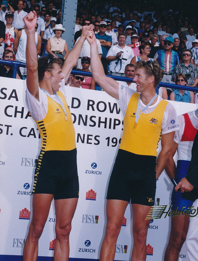 1999 World Championships - Drew Ginn and James Tomkins enjoy their win in the pair