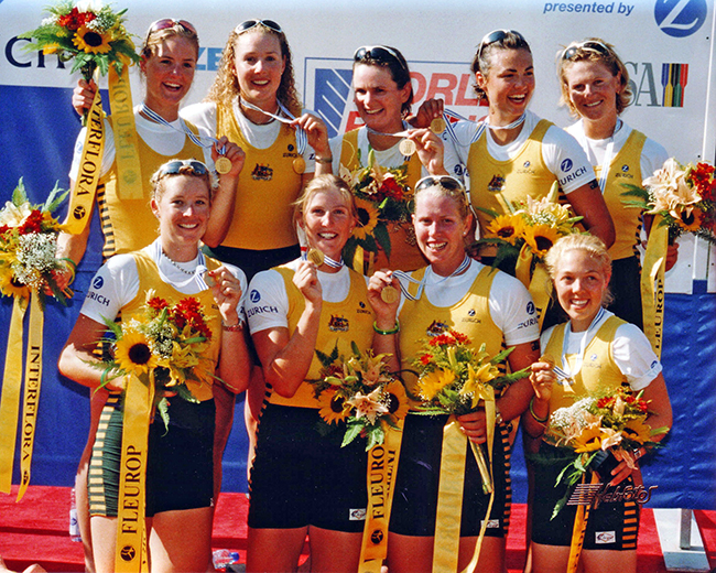 The 2002 World Championships in Seville Spain delivered not only a continuation of the great performances of the women, but also our first official para world championship gold medal, adaptive gold medal as it was then known. Victorian Hannah Every Hall stroked the lightweight women's quad and Jane Robinson again medalled in the women's eight along with fellow Victorian Rachael Taylor.