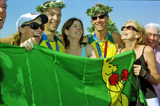Drama and heartbreak occurred at the World Cup in Lucerne, at which the reigning world champion in the Men’s Pair and Mercantile Athlete, Drew Ginn suffered a reoccurrence of a back injury and had no choice but to withdraw from competition. What followed could only be described as amazing as Mathew Long, who had missed out on selection in the Men’s Eight, took the seat of Ginn and rowing on bowside opposed to his natural stroke side, and won the World Cup. Following the team’s return to Australian soil and upon seeking medical opinion, Drew Ginn had to tragically withdraw from the Games and Mathew Long and James Tomkins were selected as the Men’s Pair for the Games. Drew no doubt immediately set his sights on the long road ahead for Athens 2004.
