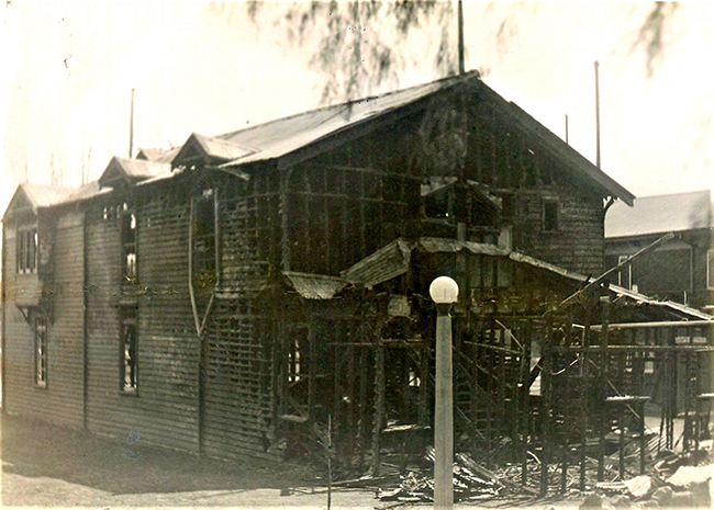 Mercantile boathouse after the fire then after the rebuild