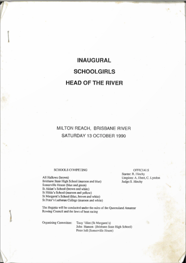 Inaugurual Schoolgirls Head of the River Programme https://bsra.org.au/historical-programmes/