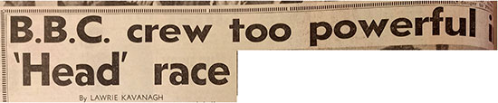 “B.B.C. completely dominated yesterday’s Head of the River rowing regatta with seven wins and four seconds from 12 starts.