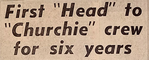 “CHURCH of England Grammar School’s mature rowing schoolboys took the school’s first G.P.S. Head of the River in six years on Milton Reach Yesterday. It was a masterly performance in choppy water as the “Churchie” crew, maintaining a low 34-stroke rating, slid home three-quarters of a length clear of State High