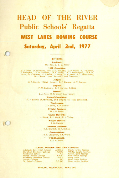 SA Schools Head of the River 1977 Program, from https://static1.squarespace.com/static/612f1eb5f5136463fd5079a7/t/63438888a318dc69bfcc1376/1665370268347/1977_TK-min.pdf