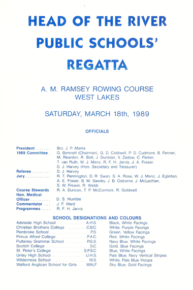 SA Schools Head of the River 1989 Program, from https://static1.squarespace.com/static/612f1eb5f5136463fd5079a7/t/634389dbe6acde7563cc5273/1665370613218/1989_GS-min.pdf