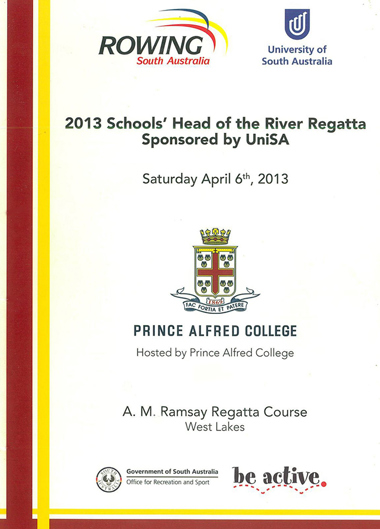 The 2013 regatta was conducted on 6th April and hosted by Prince Alfred College.